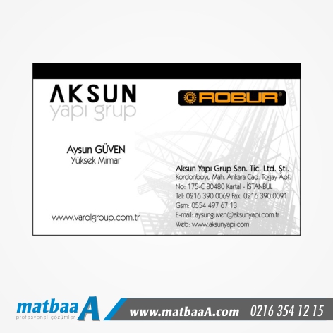 * Tuale 280 gram kağıda tek/çift yönlü kartvizit