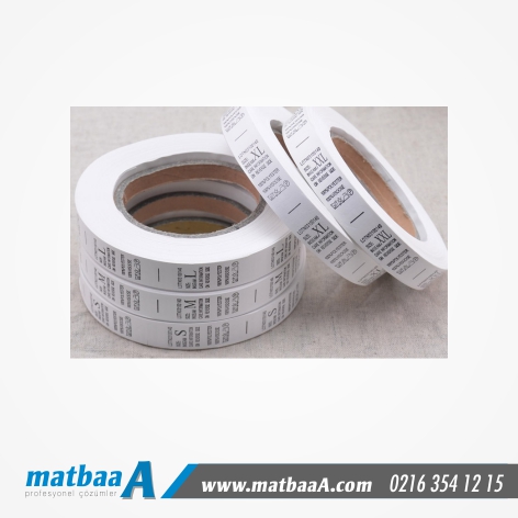 Tekstil etiketleri yaptığınız ürünün üzerine markanızı vurmanızı sağlayan reklam aracıdır. Rengi ve boyutları, etiketin türü fiyat belirlemede en önemli etkenlerdendir. Kumaş üzerine ve çeşitli kağıtlara yapılan baskılarla oluşturulan etiketlerdir. Saten, polyester, pamuk, laminasyonlu akmaz vb. bir çok çeşit kumaş üzerine istenilen motif ve bilgiler boya baskı tekniği kullanılarak yapılır.